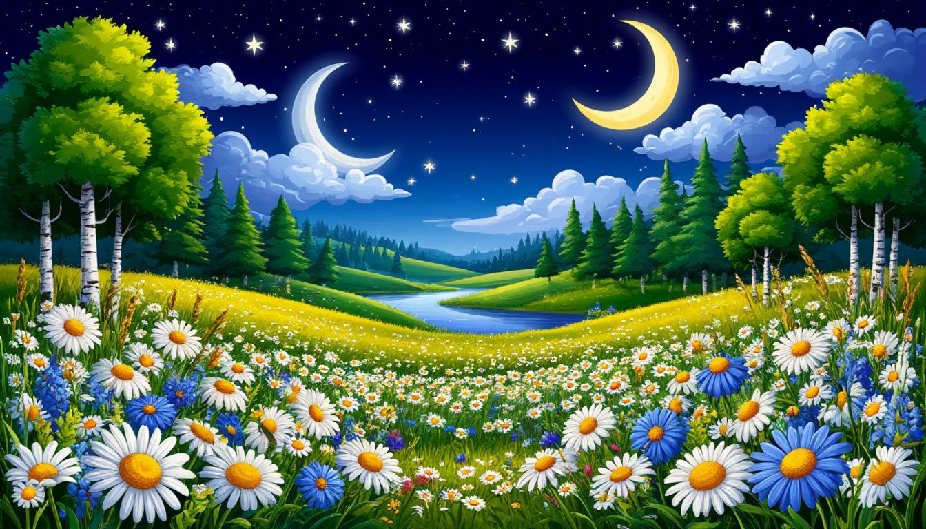 Аудопесня НАД ОПУШКОЙ ЮНЫЙ МЕСЯЦ... слушать, скачать, песня сгенерирована автором в нейросети: