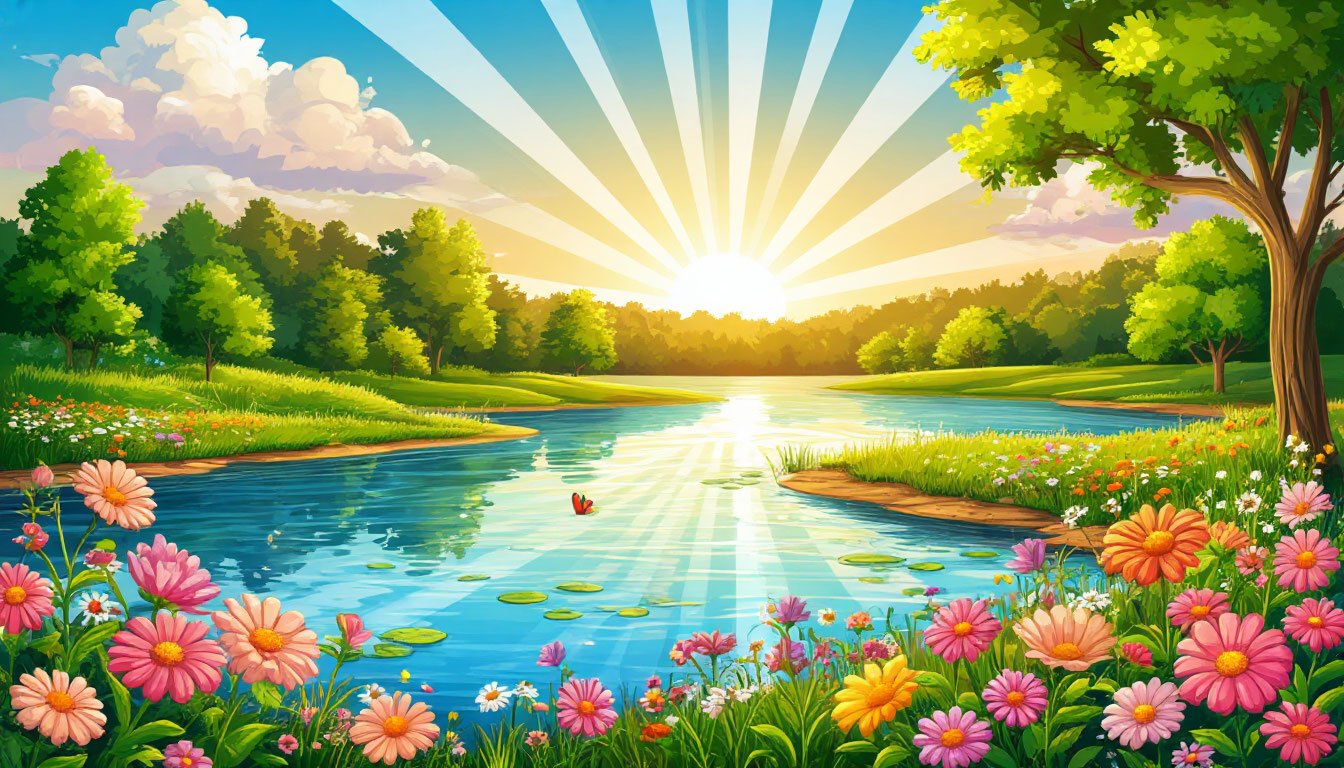 И серебром сияют травы у реки,