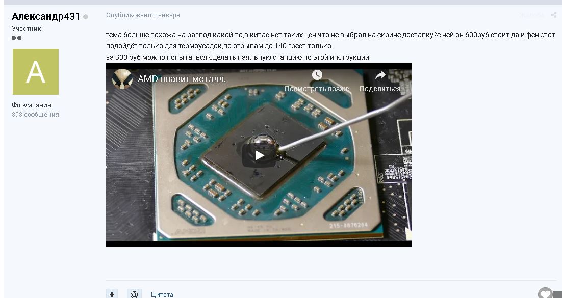 catch Опубликовано 24 января, 2019 Жалоба Share Опубликовано 24 января, 2019 В 17.01.2019 в 16:18, Стокман сказал: Типа остряк??? Все правильно он написал, феном для волос и термотрубки можно усадить и даже стекло у телефона отклеить. Вот то, что у queyron-а по ссылке реально будет припой плавить. Ссылка на комментарий Поделиться на другие сайты More sharing options...