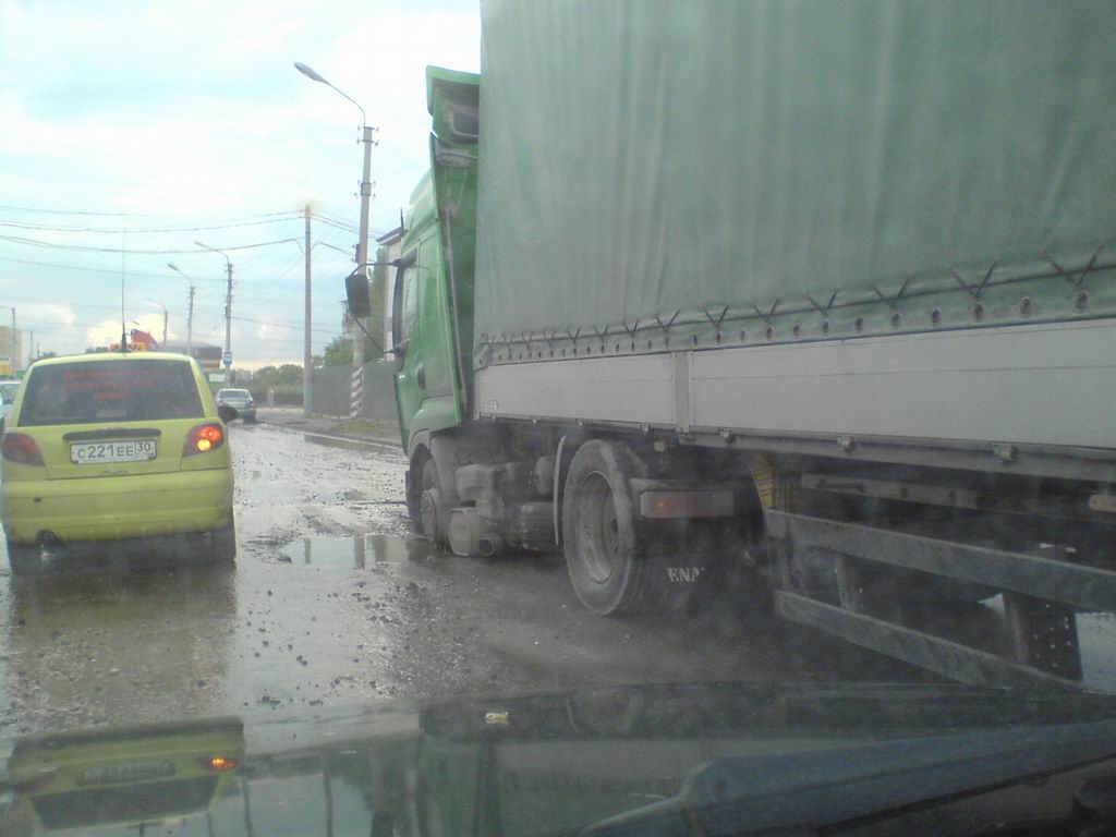 Дороги просто в хлам... Буквально час назад, Началовское шоссе, сразу после тубдиспансера. Яма такая, что аж фура села.