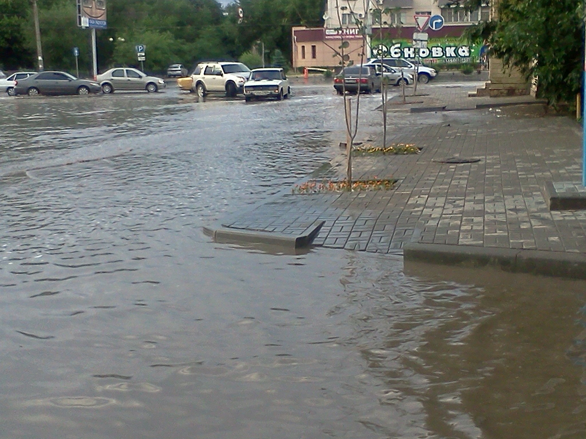 перекрёсток ахшарумова-боевая около 1,5часа назад 14ая передок в хламину и синяя вроде тойота подбитая сбоку , фотать не стал камера гумно.
